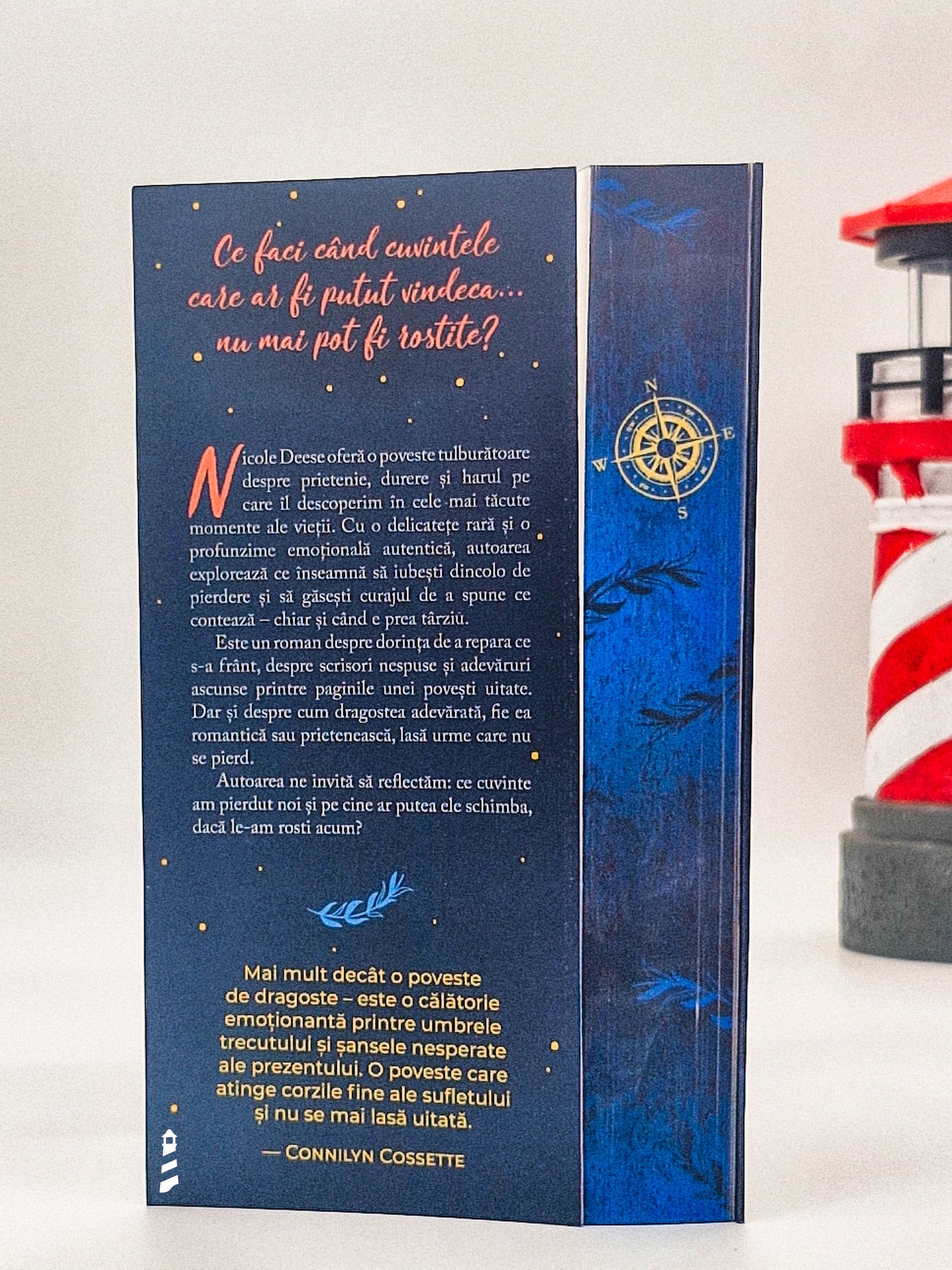 Este un roman despre dorința de a repara ce s-a fraât, despre scrisori nespuse și adevăruri ascunse printre paginile unei povești uitate.